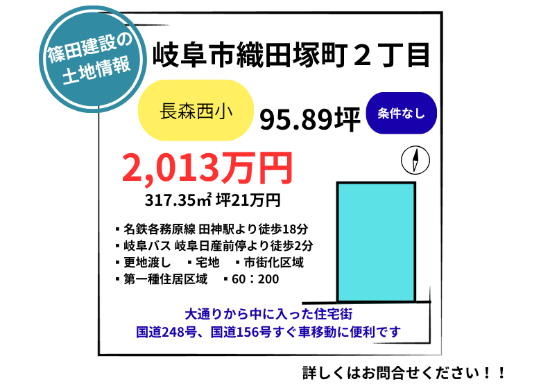 【土地情報】岐阜市織田塚町 95.89坪 建築条件なし